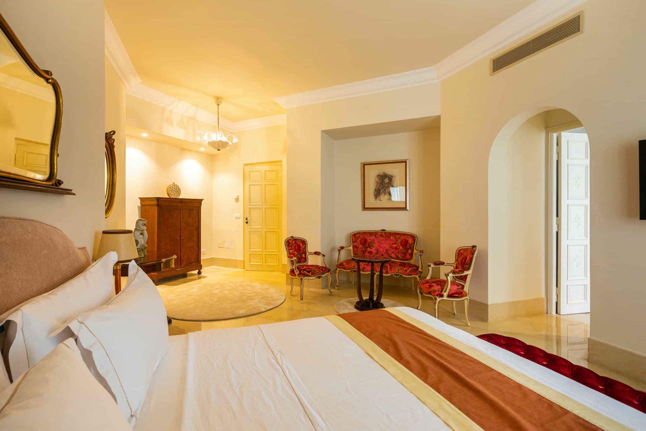 Kamriya est la quintessence de ce qu’incarne Nawara Résidence. Spacieuse et richement décorée, cette suite offre une expérience unique où chaque élément est pensé pour offrir confort et prestige. La suite est composée d’une vaste chambre, d’un salon séparé, d’une grande salle de bain et d’espaces de détente privés, le tout dans une ambiance inspirée par le bien-être que la fleur d’Hibiscus représente. Profitez d’un séjour royal, la suite présidentielle vous promet une expérience au-delà de vos attentes.
