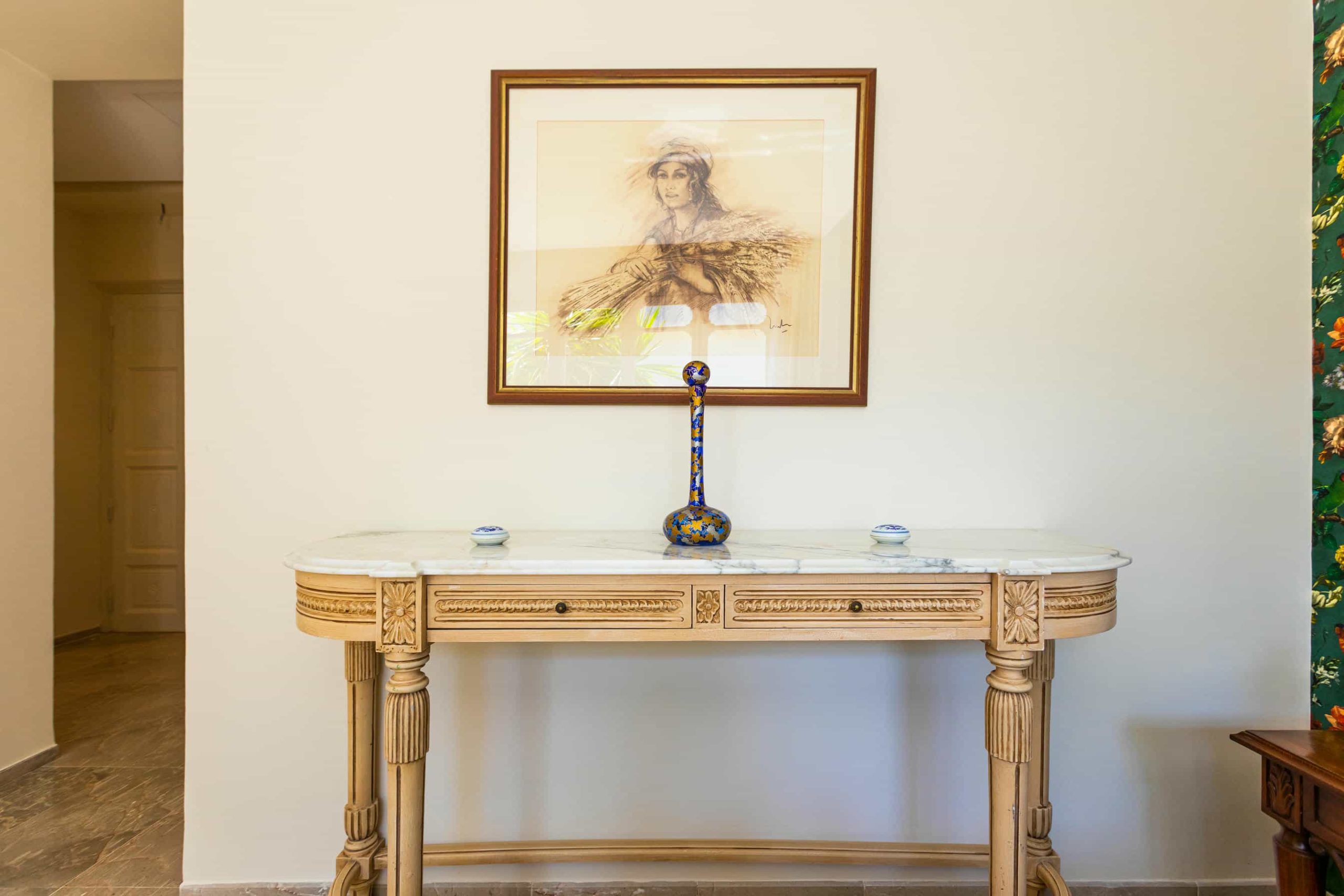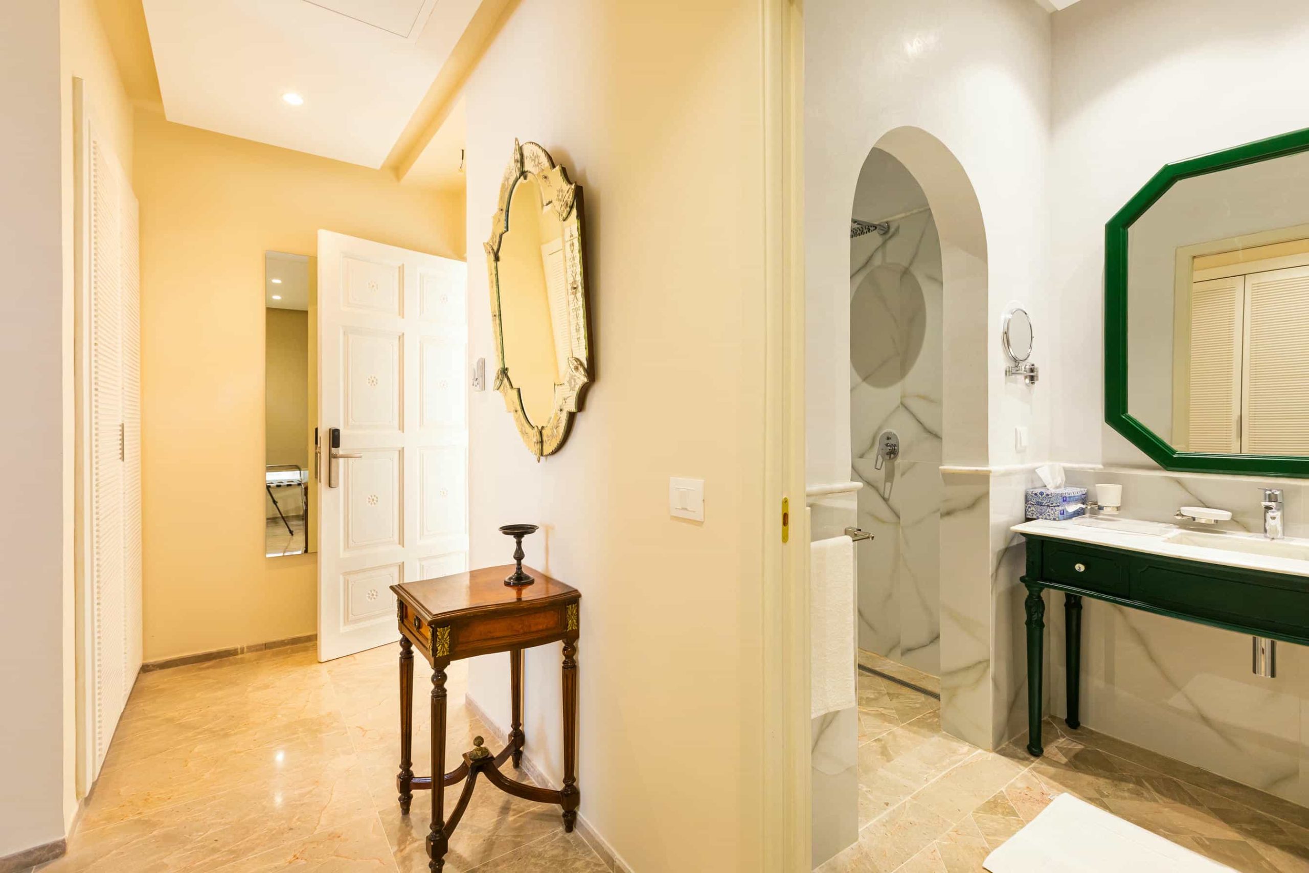 Kamriya est la quintessence de ce qu’incarne Nawara Résidence. Spacieuse et richement décorée, cette suite offre une expérience unique où chaque élément est pensé pour offrir confort et prestige. La suite est composée d’une vaste chambre, d’un salon séparé, d’une grande salle de bain et d’espaces de détente privés, le tout dans une ambiance inspirée par le bien-être que la fleur d’Hibiscus représente. Profitez d’un séjour royal, la suite présidentielle vous promet une expérience au-delà de vos attentes.